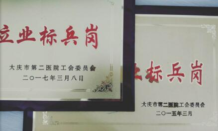 科室荣誉:科室多次荣获建功立业标兵岗及先进科室等荣誉称号,科室人员荣获礼仪之星称号。