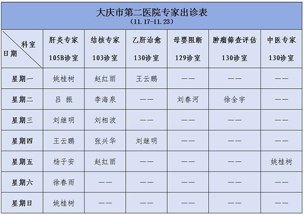 【出诊信息】11月17日-23日专家出诊信息